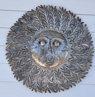 The face on the side was purchased from a garden center in Minnesota. It came from Haiti and was made from an old oil drum.